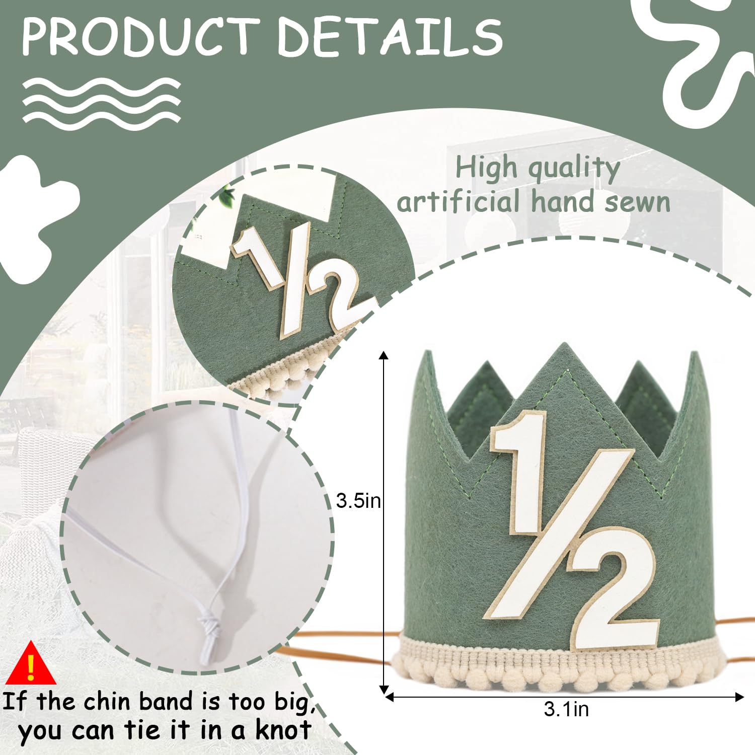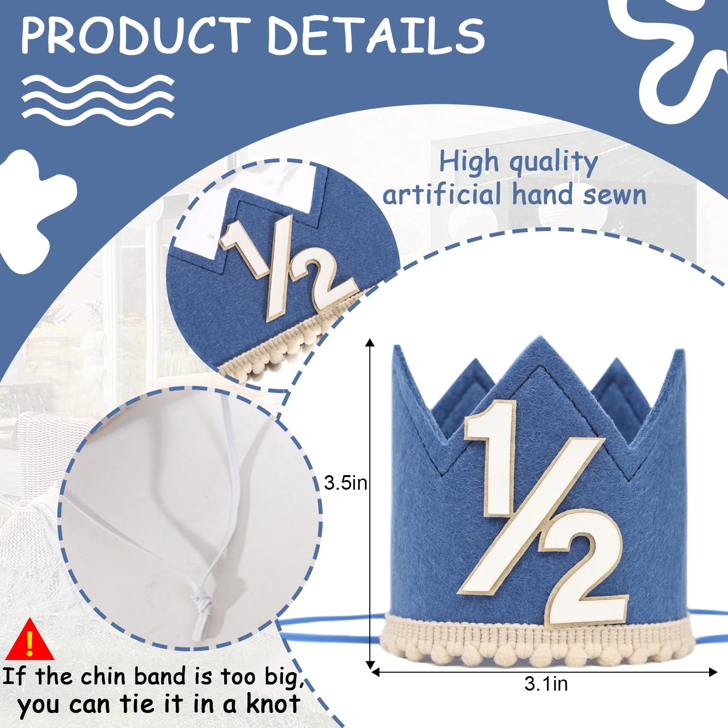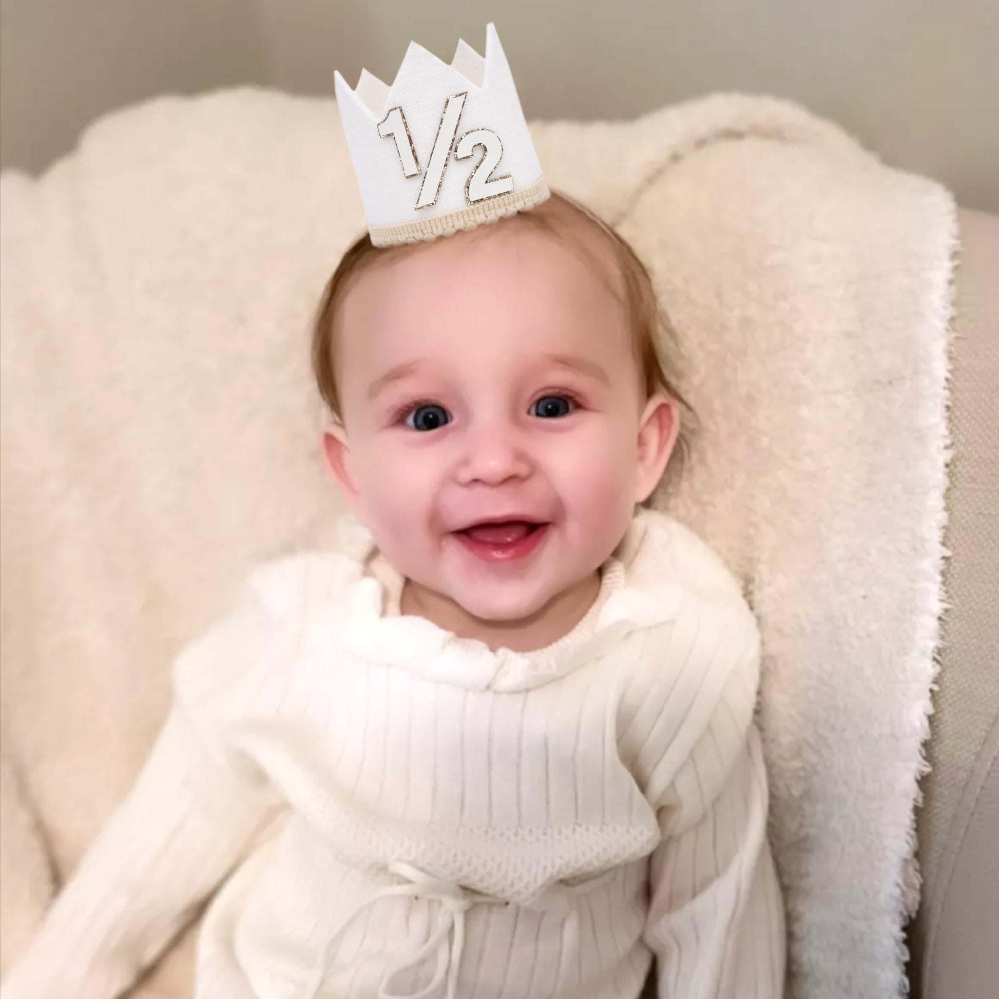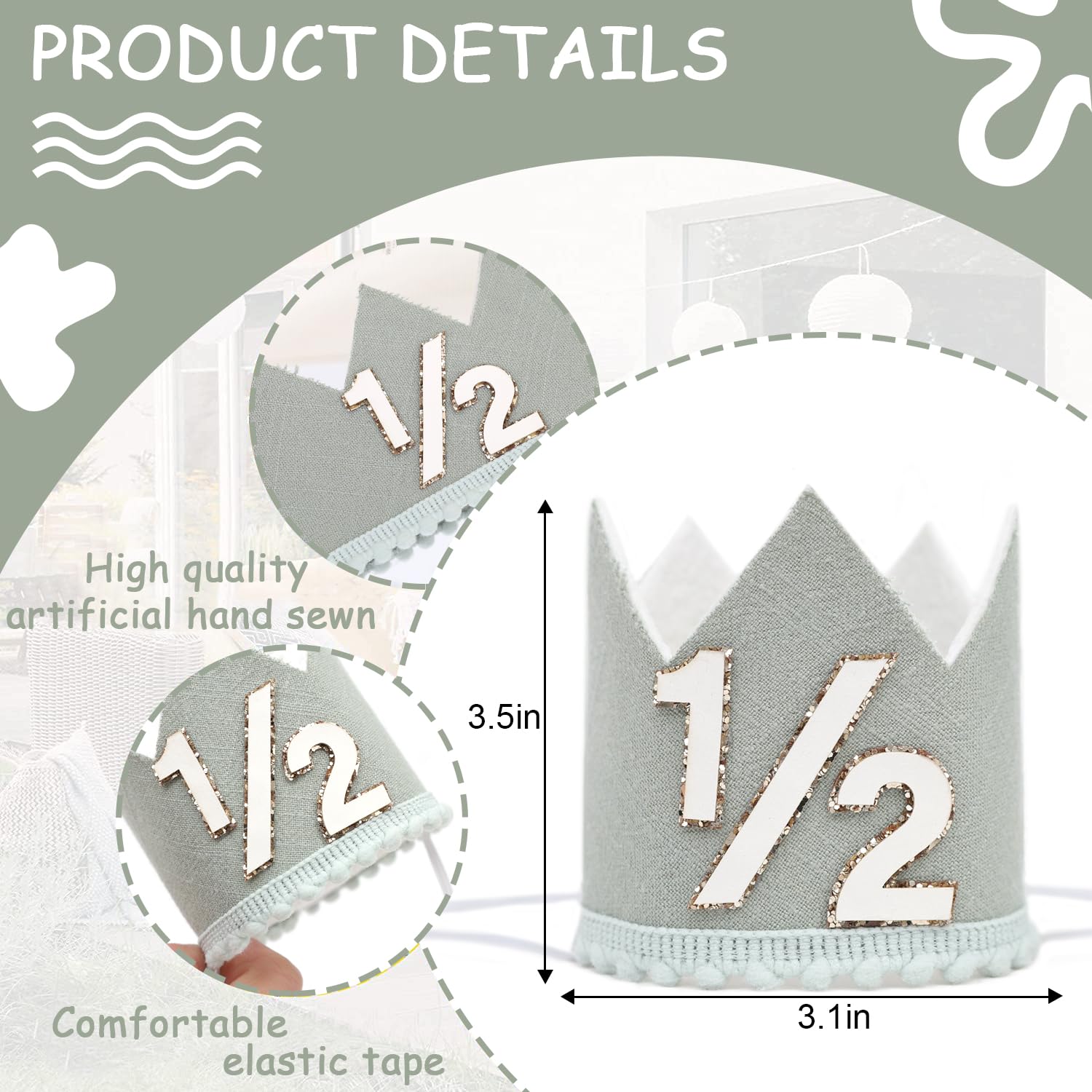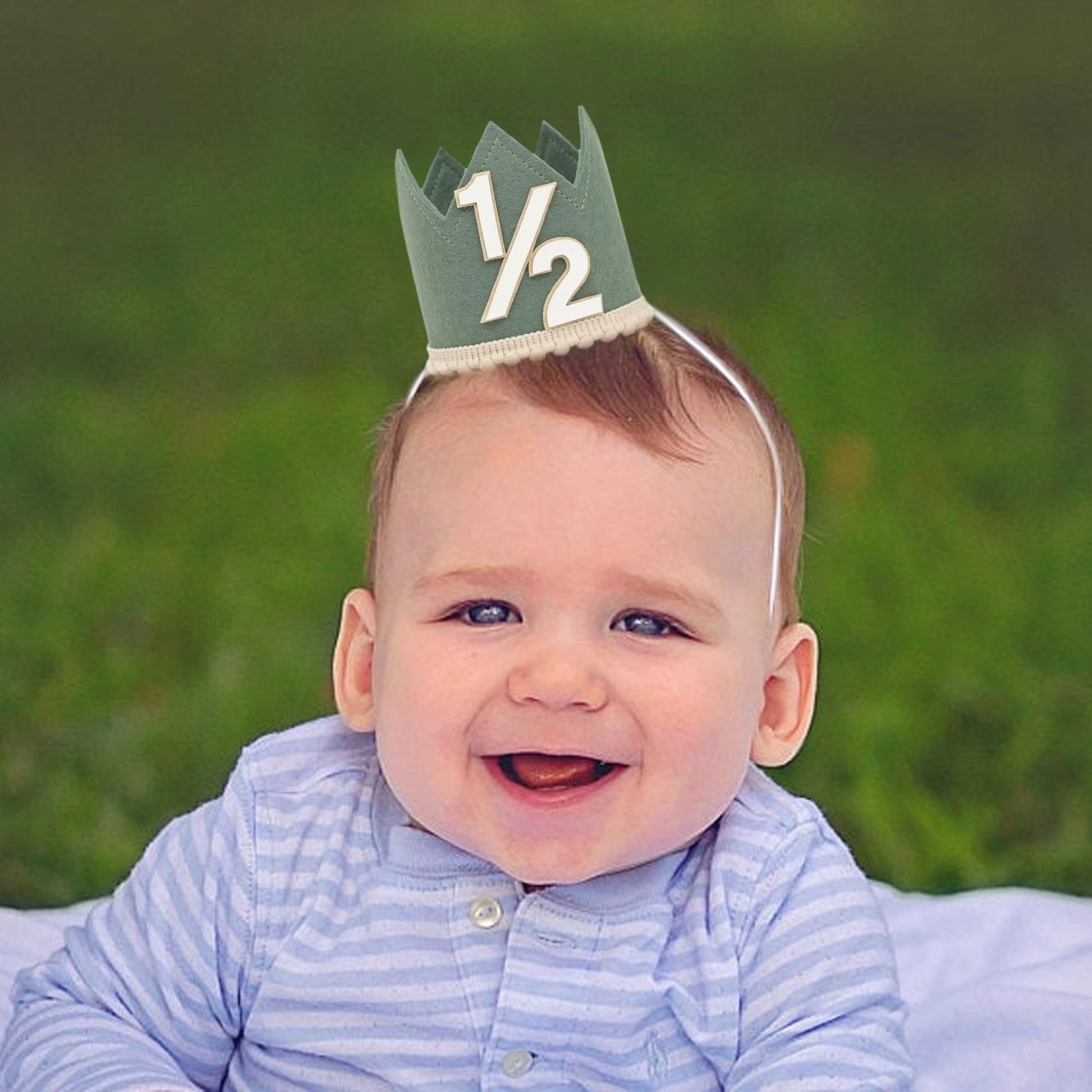 - CELEBRATE MILESTONES IN STYLE Make your little one’s half-birthday extra special with this Simple Half Birthday Party Crown. Perfect for six-month celebrations, it adds a fun and festive touch to photos and decorations.